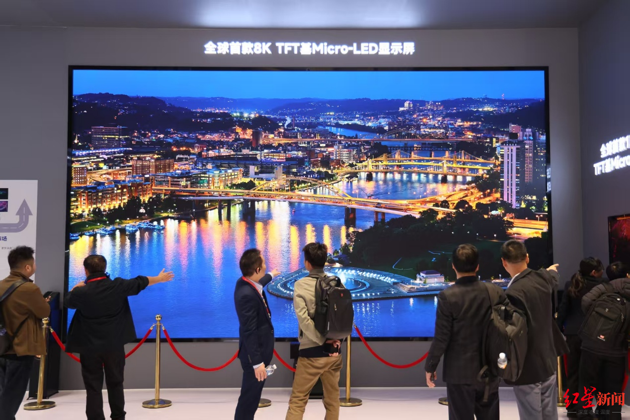 在体验区中,辰显光电展出的全球首款8K TFT基Micro LED显示屏,凭借270英寸超大尺寸与极致画质,成为全场焦点。据悉,其像素间距仅0.7毫米,实现8K超高清分辨率画面细腻通透,可广泛应用于专业影院、高端私人影院、指挥调度中心、商业展示等场景。