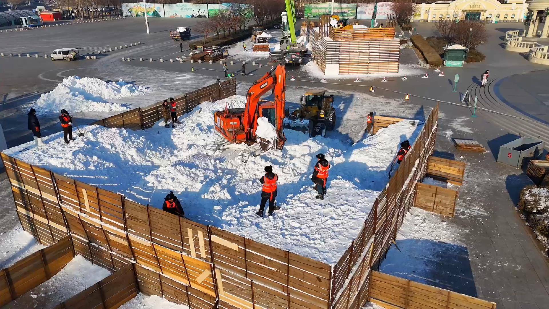 人民网哈尔滨12月3日电 (记者徐成龙)12月1日,第38届太阳岛雪博会标志性景观“雪人先生”正式启动堆雪工作。